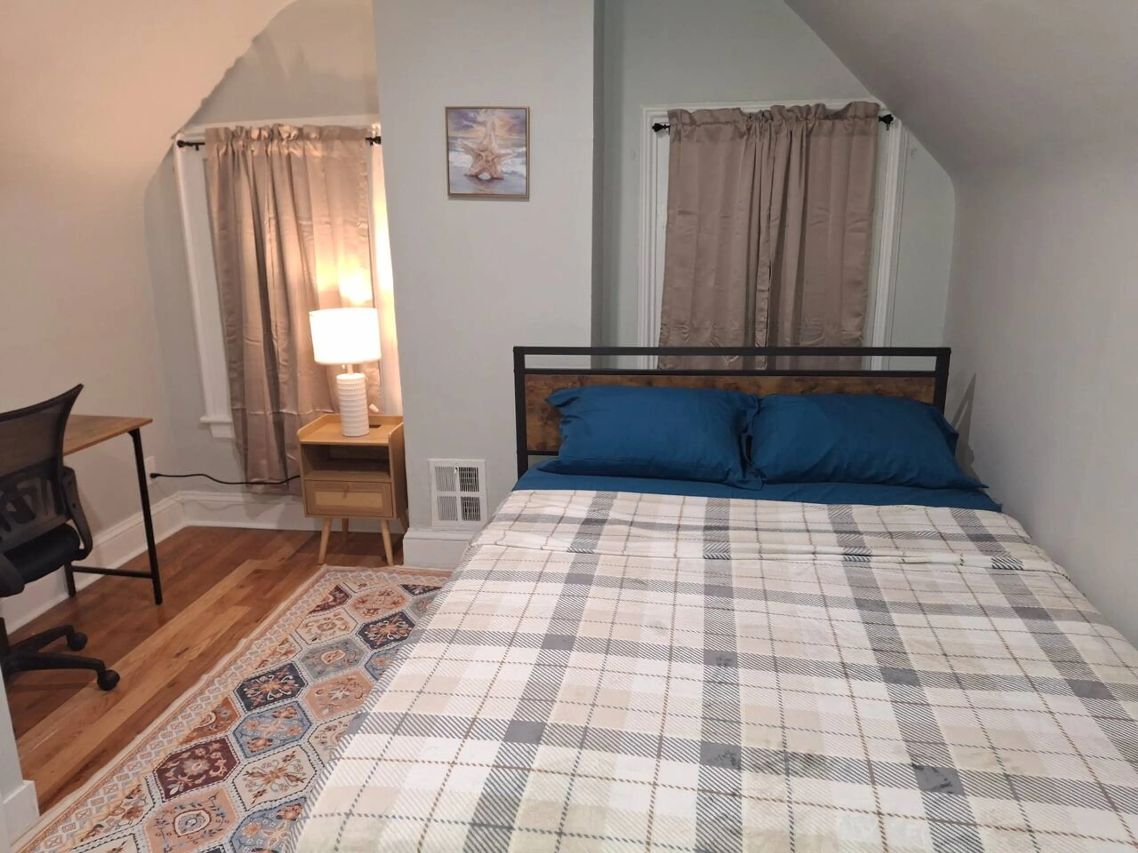 Welcome to our spacious and comfortable top-floor private room in a 6-bedroom, 3-floor single-family home, perfect for travelers looking for convenience, comfort, and a great location. This listing is for one private bedroom on the top floor, which features two bedrooms total and one shared bathroo...